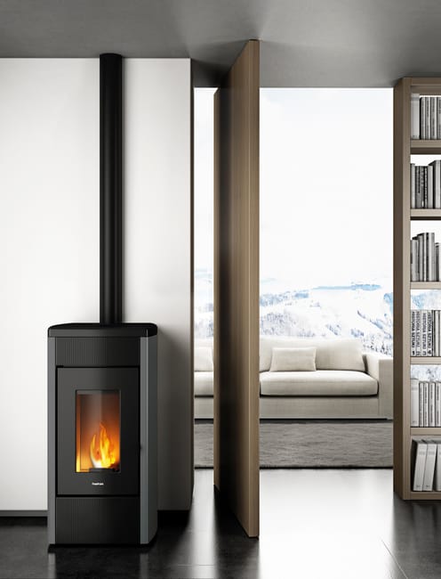 Estufa de pellet canalizable de instalación sencilla de 14 kW color negra con WiFi