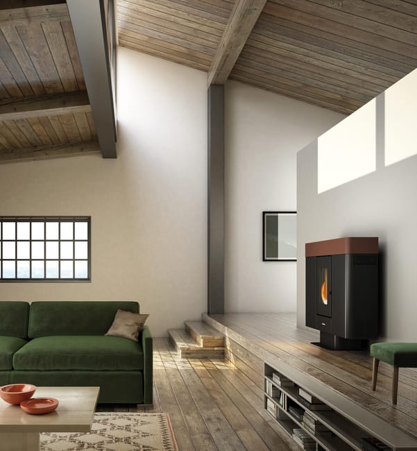 Una solución de calefacción moderna, económica y respetuosa con el medio ambiente. Esta estufa de pellet de 10kW calienta superficies de hasta 100 m² con un consumo mínimo de biomasa y un alto rendimiento térmico.